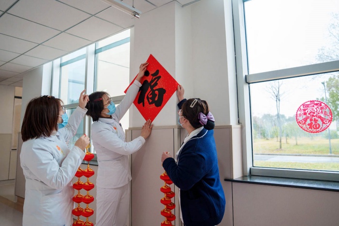 龍年春節(jié)將至,大街小巷到處洋溢著新春的氣息。“對(duì)我們來說,最美好的年味,莫過于患者的健康。”浮石院區(qū)負(fù)責(zé)人介紹說,把病區(qū)布置得年味濃郁,患者心情也會(huì)好起來,也體現(xiàn)了新春佳節(jié)的溫馨與暖意,共同祈福來年身體健康、生活安康。