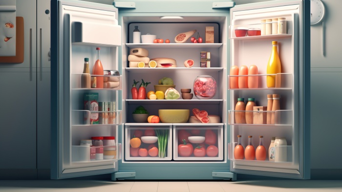 4. 妥善保存食物。冰箱不是食物的“保險箱”,不宜過多存儲食物,應(yīng)分開存放生熟食品,保持清潔。