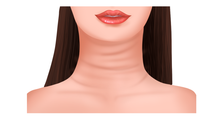 頸部皮膚與面部皮膚一樣,也受到時(shí)間和環(huán)境的影響。隨著年齡的增加,頸部皮膚水分丟失、膠原蛋白流失,皮膚彈性下降,出現(xiàn)不同程度的皮膚松弛,頸紋明顯增加。頸部脂肪堆積也會(huì)導(dǎo)致皮膚下垂形成頸紋,除了自身老化外,紫外線照射、忽略頸部皮膚保養(yǎng)、長(zhǎng)時(shí)間低頭等因素也會(huì)促進(jìn)頸紋的形成。