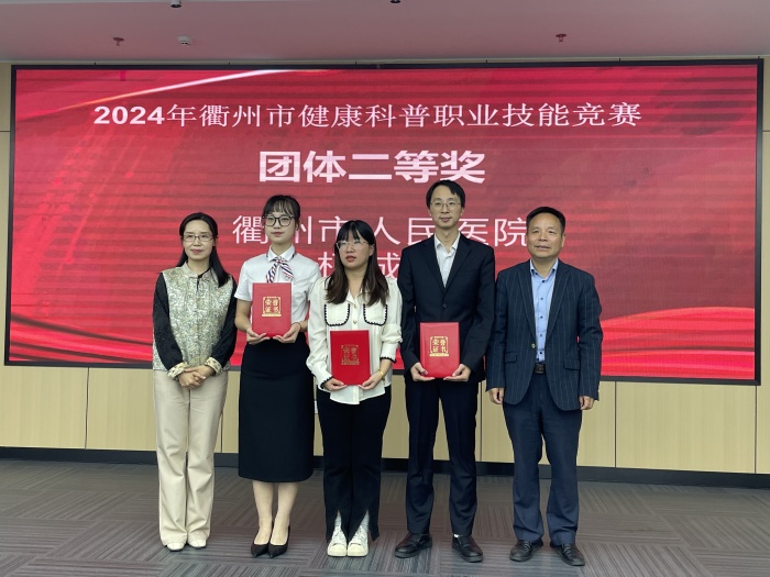 我院參賽選手在此次技能競賽中表現(xiàn)優(yōu)異,他們以通俗易懂的語言和新穎獨特的表現(xiàn)方式,將生澀難懂的醫(yī)學知識轉(zhuǎn)化為通俗易懂的健康科普內(nèi)容。最終,341病區(qū)護士長江超獲得“金牌講師”稱號,急診科汪婭君、李芝萍、徐濤組成的團隊獲得團體二等獎。