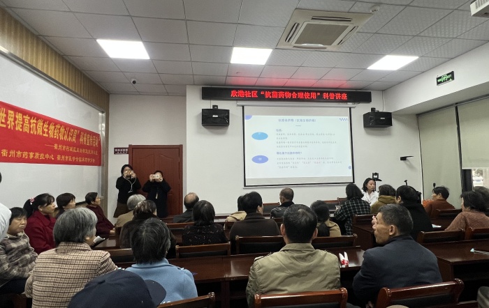 我院藥學部祝芯微藥師就如何認識抗微生物藥物、抗菌藥物,不合理使用抗菌藥物的危害,以及抗菌藥物使用的誤區(qū)等進行講座,受到居民們的歡迎。