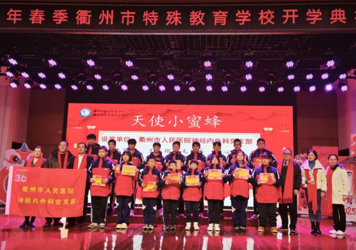 2月19日,在衢州市特殊教育學校的開學典禮上舉行了一場特殊的頒獎儀式,由我院神經內外科黨支部設立的“天使小蜜蜂獎”頒發(fā)給17名品學兼優(yōu)、積極進取的學生。