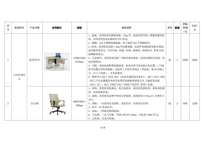 衢州市人民醫(yī)院2025年1、2月份零星家具采購項目的招標(biāo)公告