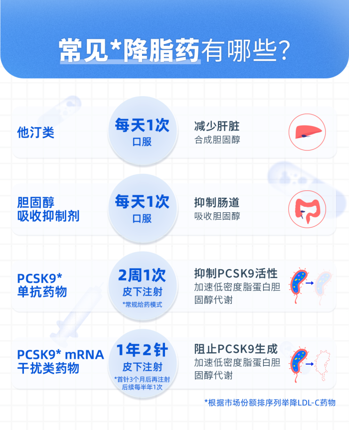 改善生活習慣1-3個月后,血脂水平仍“居高不下”,就要考慮用藥物進入體內(nèi)與斑塊“斗爭”。藥物可以幫助長久平穩(wěn)控制血脂,對延緩斑塊堆積有更顯著的效果。